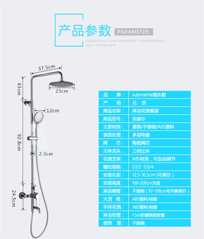 銅淋浴花灑套裝可升降方形頂噴帶下出水冷熱水淋浴雙出水