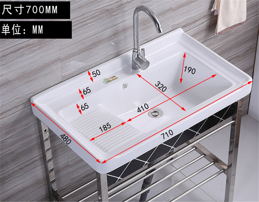 洗手盆帶搓板陽臺(tái)超深洗衣槽陶瓷洗衣盆不銹鋼支架臺(tái)