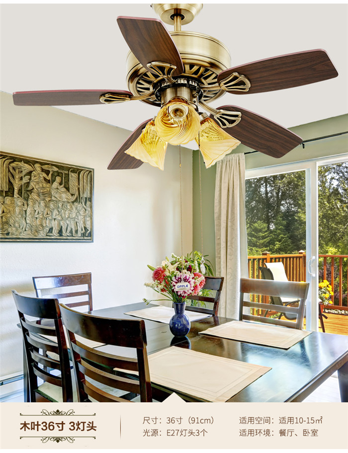OPPLE吊扇燈餐廳吊燈家用現(xiàn)代簡(jiǎn)約歐式美式風(fēng)扇燈客廳開葉扇FS