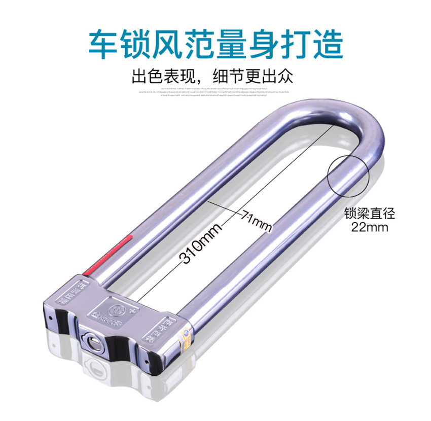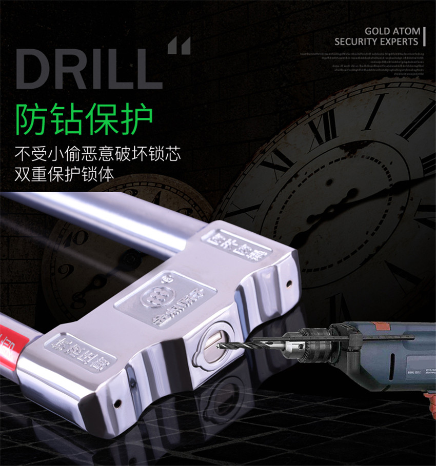 金點(diǎn)原子超B級(jí)葉片鎖芯摩托車鎖 U型加長 電瓶車鎖抗液壓剪防撬