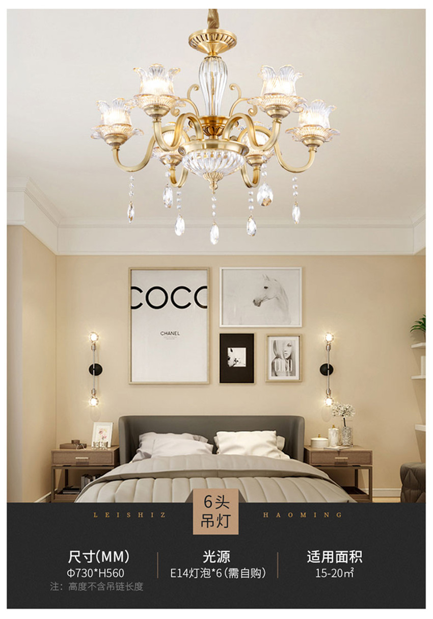 雷士法式輕奢后現(xiàn)代水晶全銅臥餐客廳吊燈