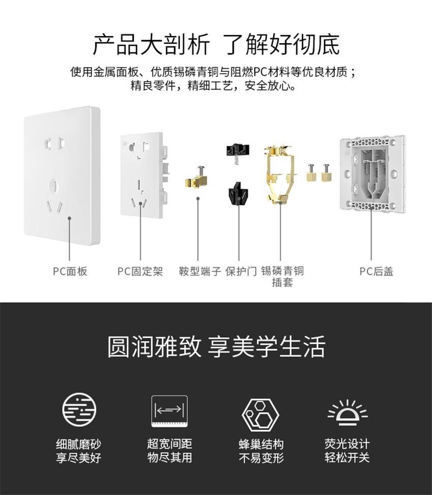 雷士照明家用暗裝墻壁二三插86型開關(guān)插座面板