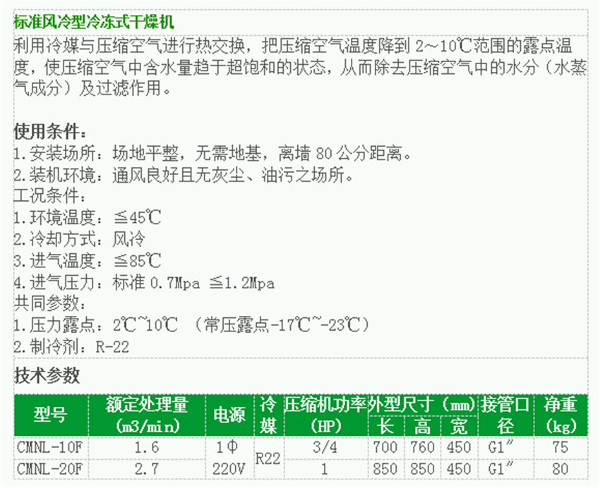 標(biāo)準(zhǔn)風(fēng)冷型冷凍式干燥機(jī)