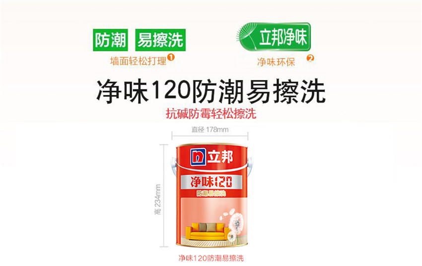 立邦漆 凈味120防潮易擦洗乳膠漆