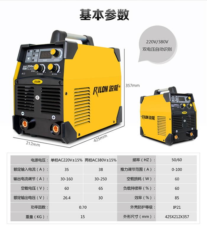 銳龍ZX7-250GS3逆變直流手工電焊機(jī)220V380V雙電壓 官方標(biāo)配
