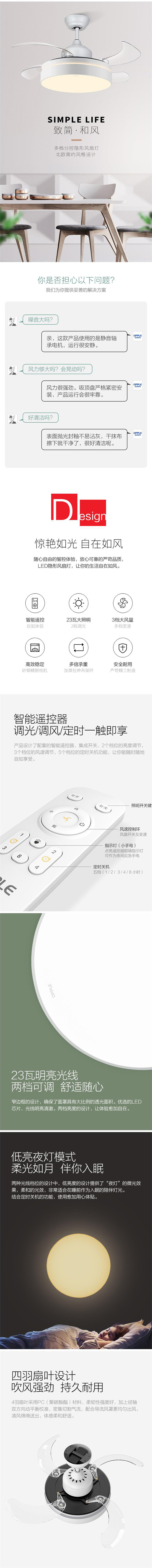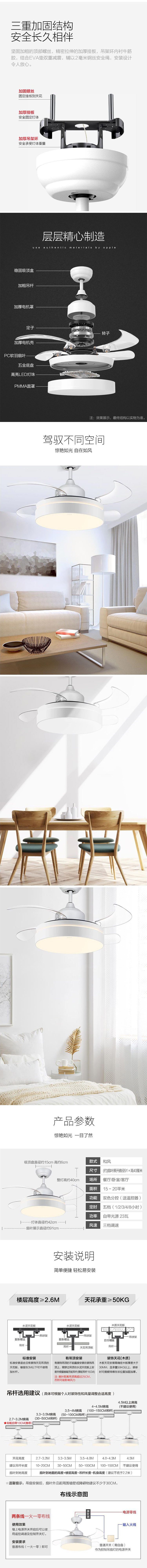 OPPLE吊扇燈 歐式簡約隱形風(fēng)扇燈led餐廳吊燈臥室客廳燈具中式燈飾餐廳燈 智能調(diào)光送遙控器 和風(fēng) 歐普照明