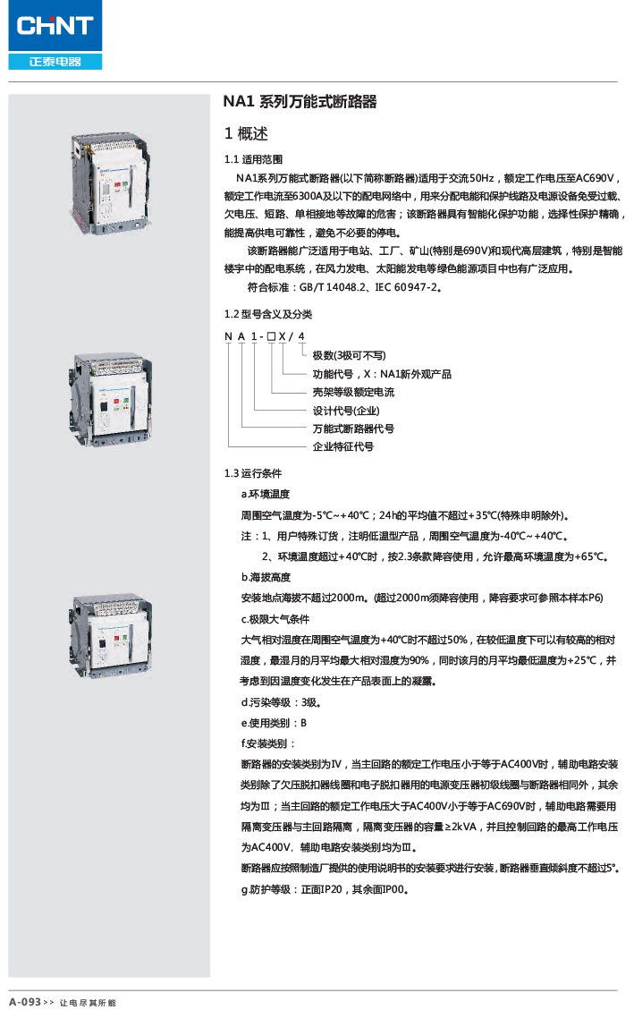 正泰電氣 NA1系列萬能式斷路器