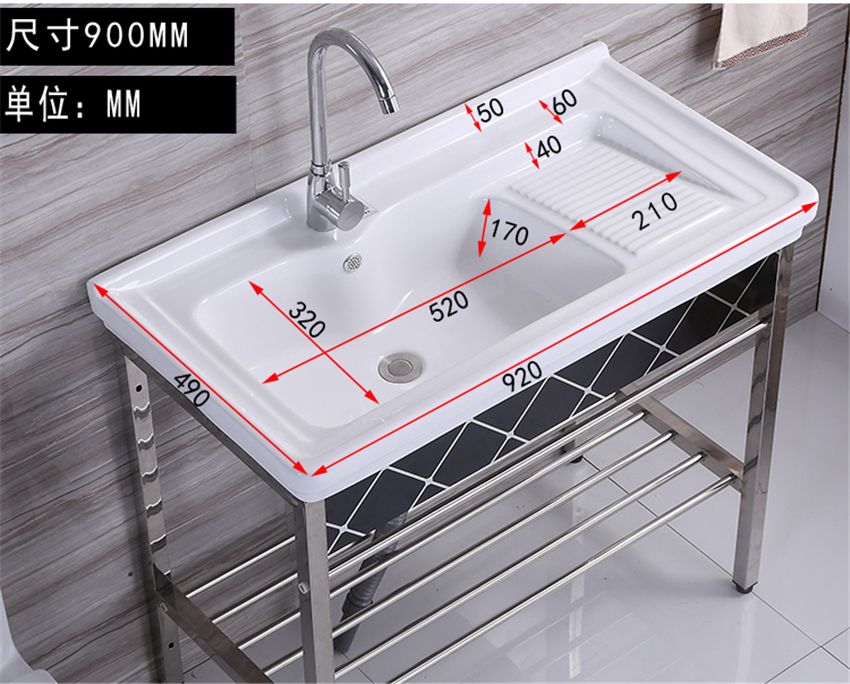 洗手盆帶搓板陽臺(tái)超深洗衣槽陶瓷洗衣盆不銹鋼支架臺(tái)