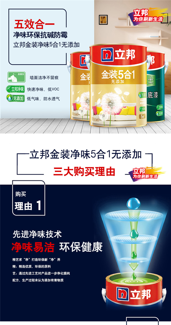 立邦乳膠漆? 金裝凈味五合一