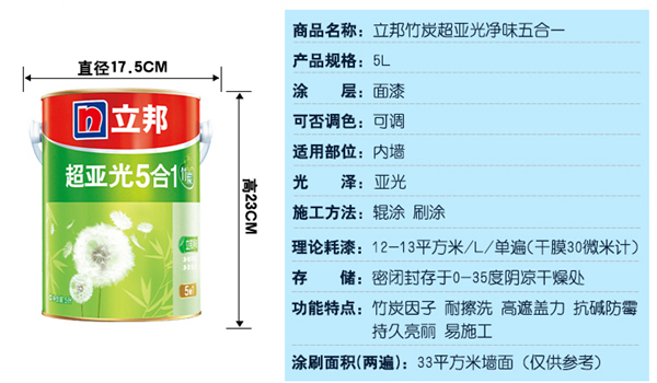 立邦漆乳膠漆 超亞光凈味五合一
