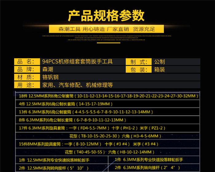 森潮94PCS機(jī)修組套套筒扳手工具