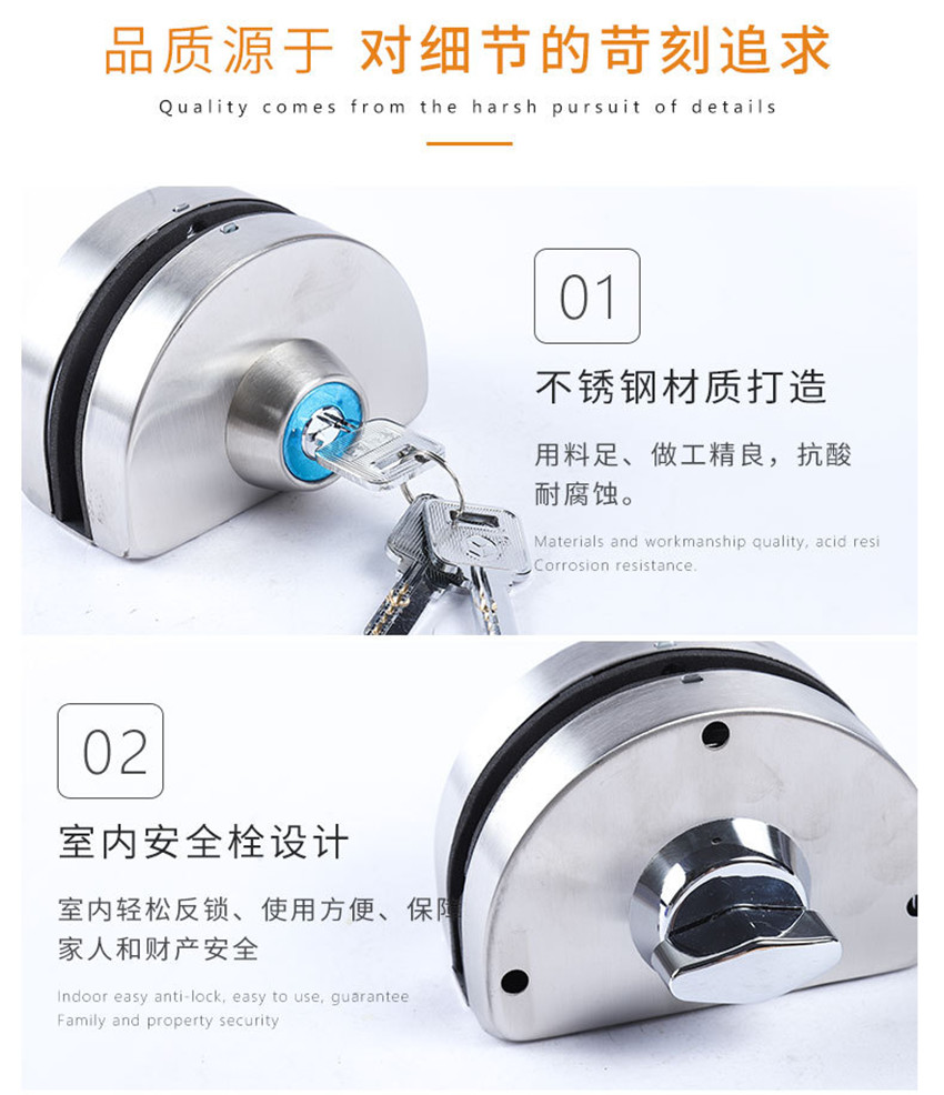不銹鋼玻璃門(mén)鎖 鎖推拉玻璃鎖單雙門(mén)半圓型無(wú)框玻璃門(mén)鎖