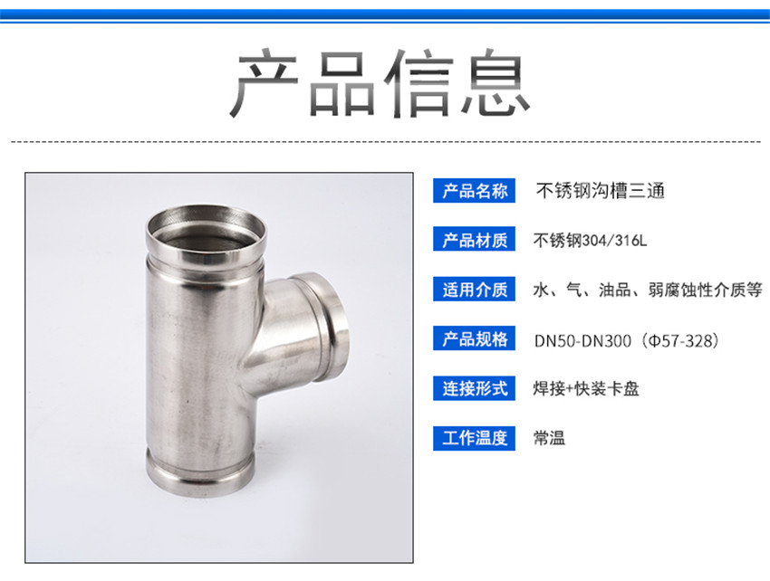 304不銹鋼溝槽等徑三通
