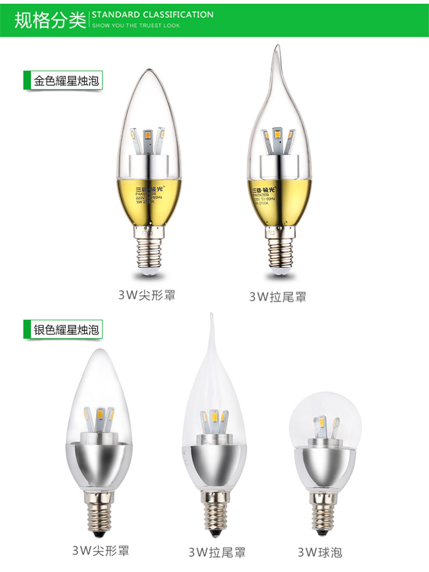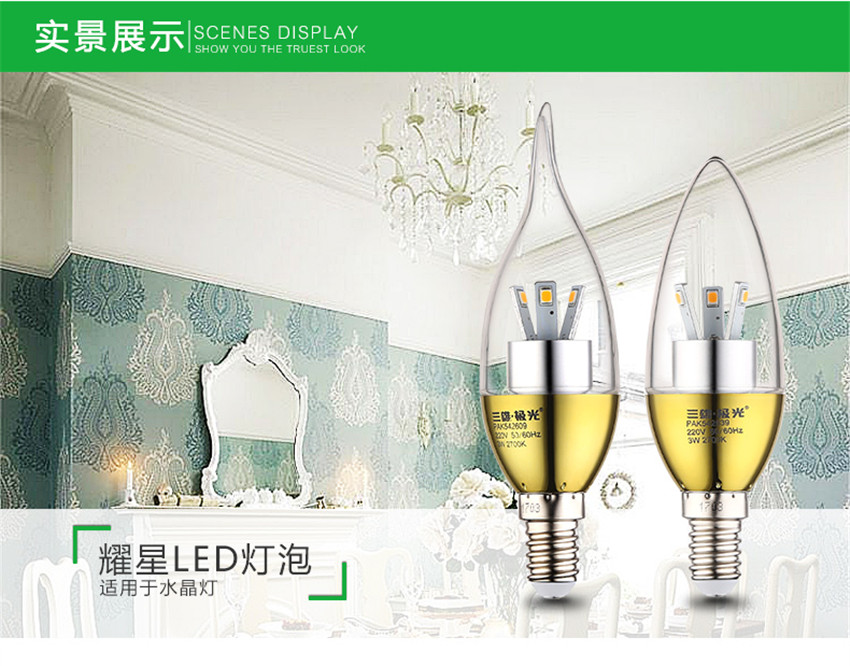 三雄極光 金色led蠟燭燈泡