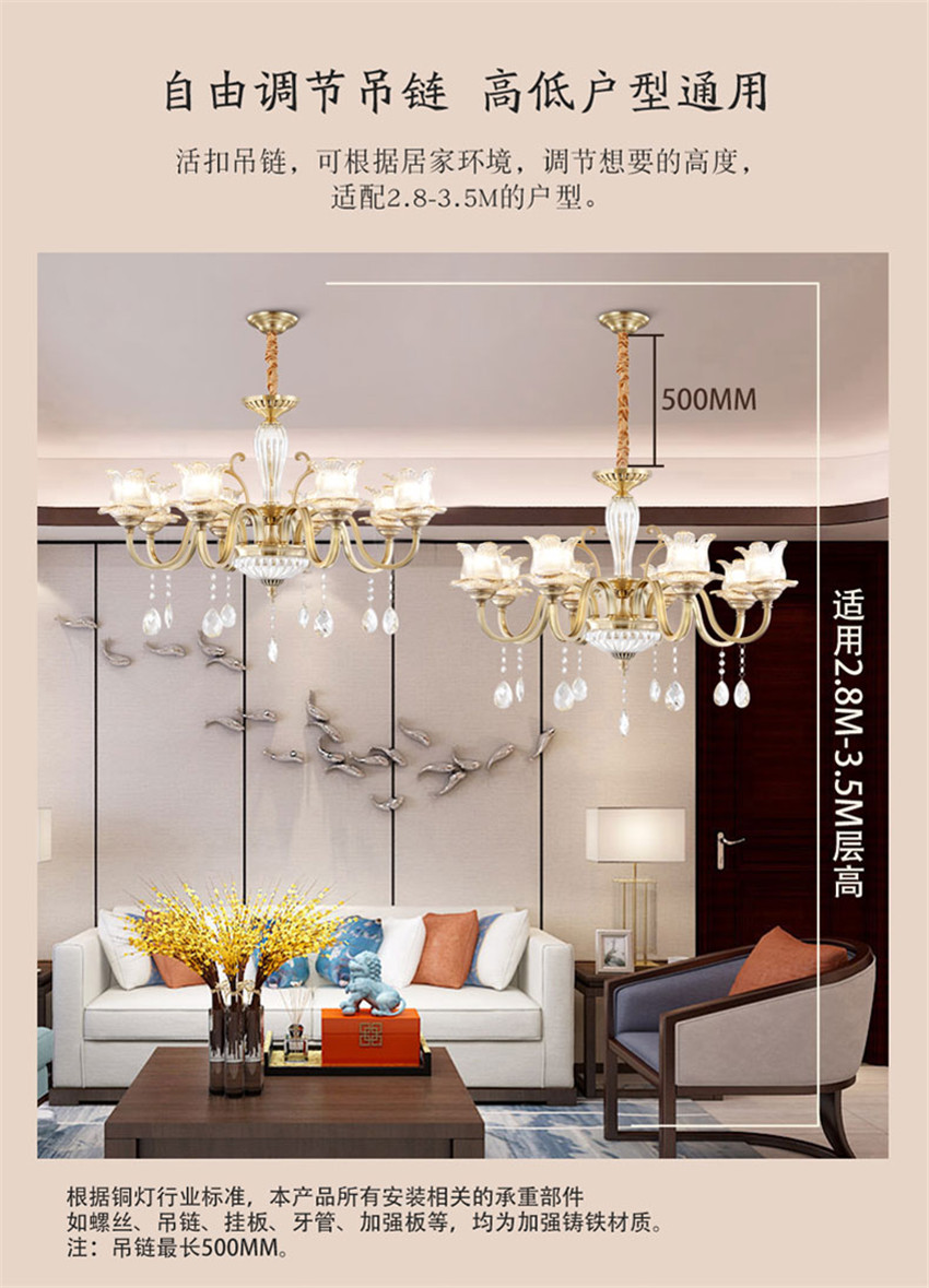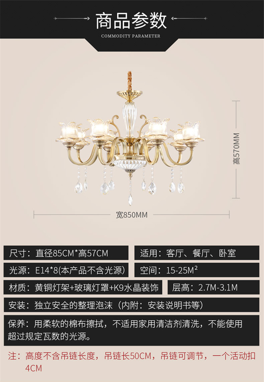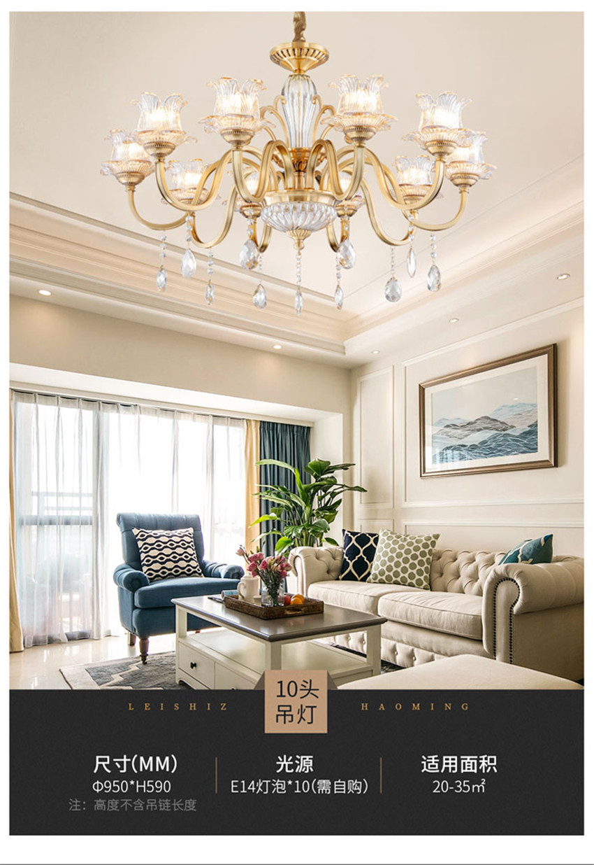雷士法式輕奢后現(xiàn)代水晶全銅臥餐客廳吊燈