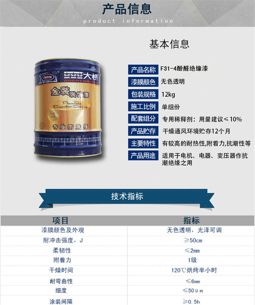浙江大橋牌F31-4酚醛絕緣漆透明B級絕緣漆
